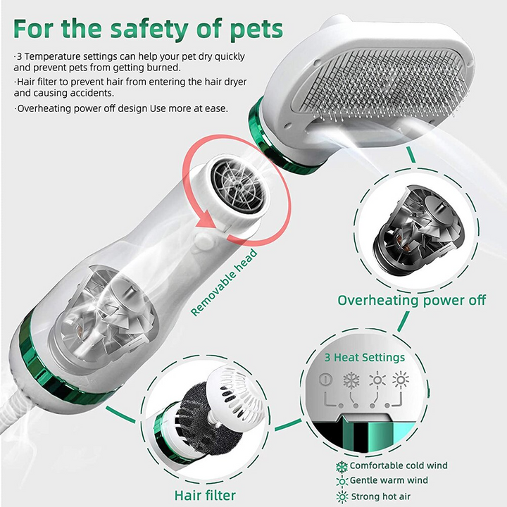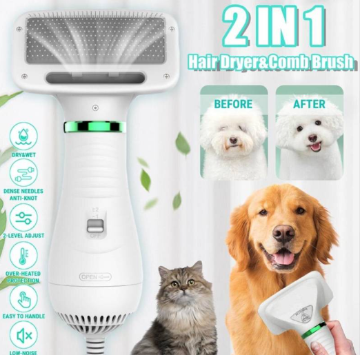 🐶 Este innovador producto combina un cepillo desenrédente y una secadora para dejar a tu mascota perfectamente peinada y seca. ¡Olvídate de tener que usar un cepillo para desenredar y un secador para secar! 🐾