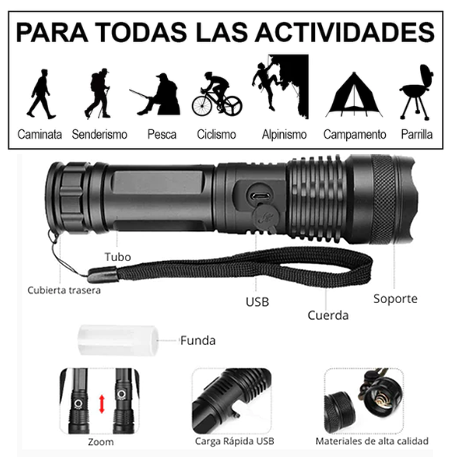 La oscuridad ya no será un obstáculo en tus aventuras nocturnas con esta poderosa linterna LED